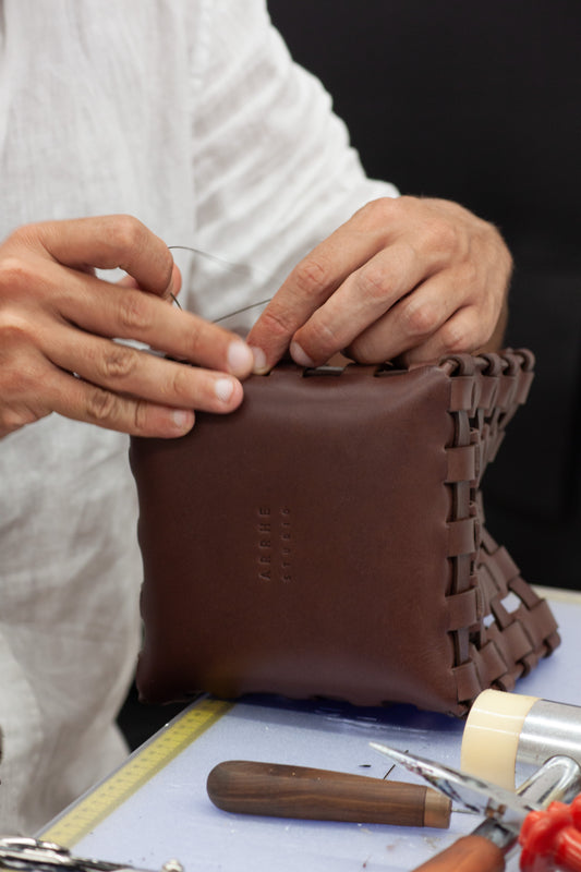 Our permanent collection, from which all others take shape, celebrates leather in its entirety: each bag is born from a single piece,