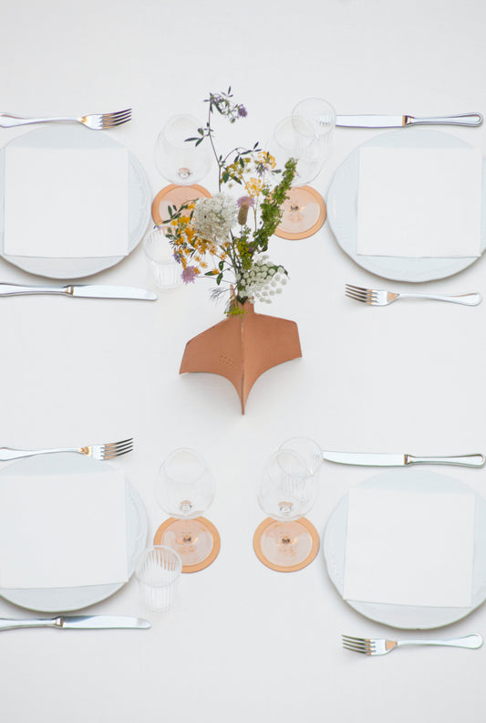 carefully folded to create pure, harmonious forms that reveal the material’s natural beauty.