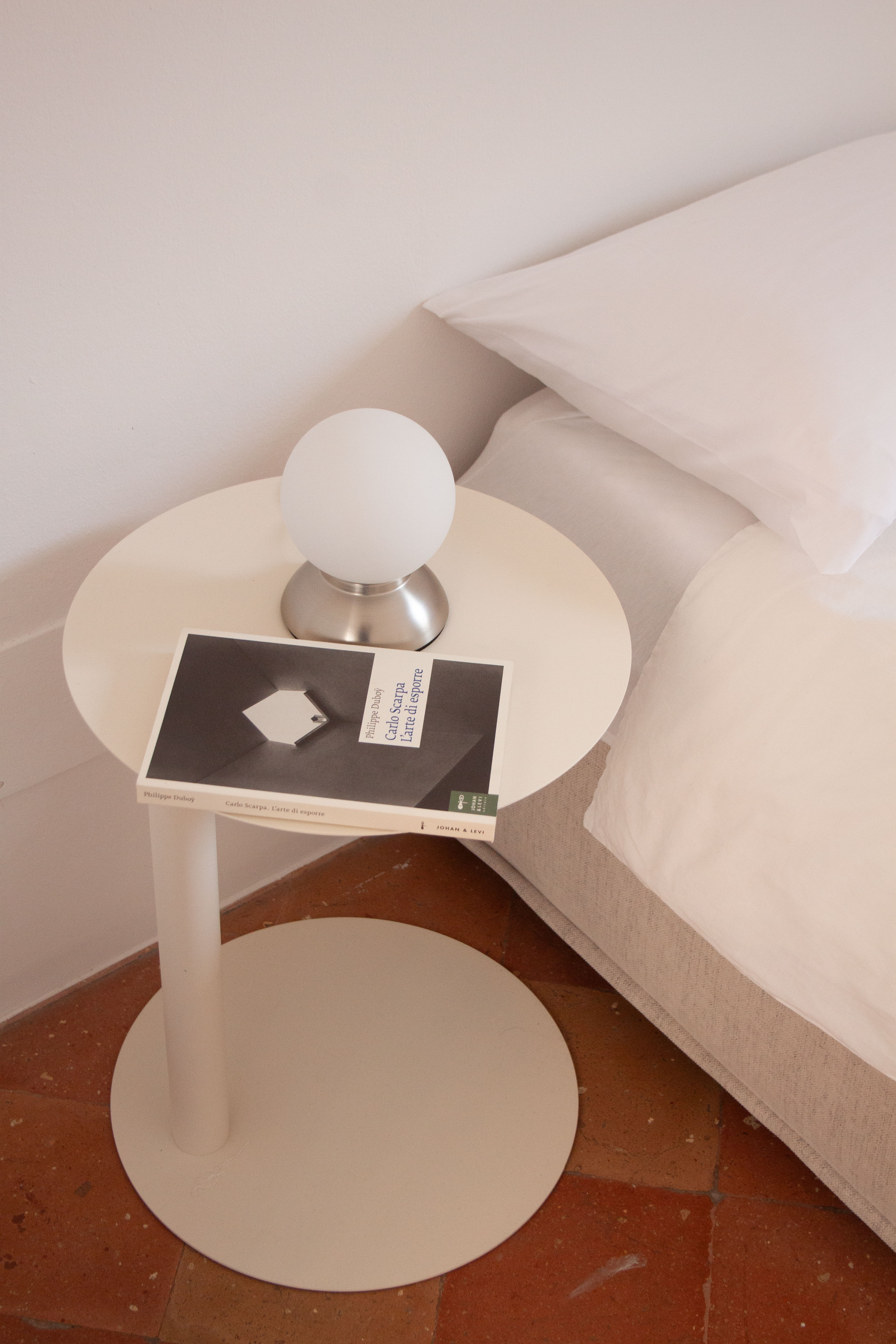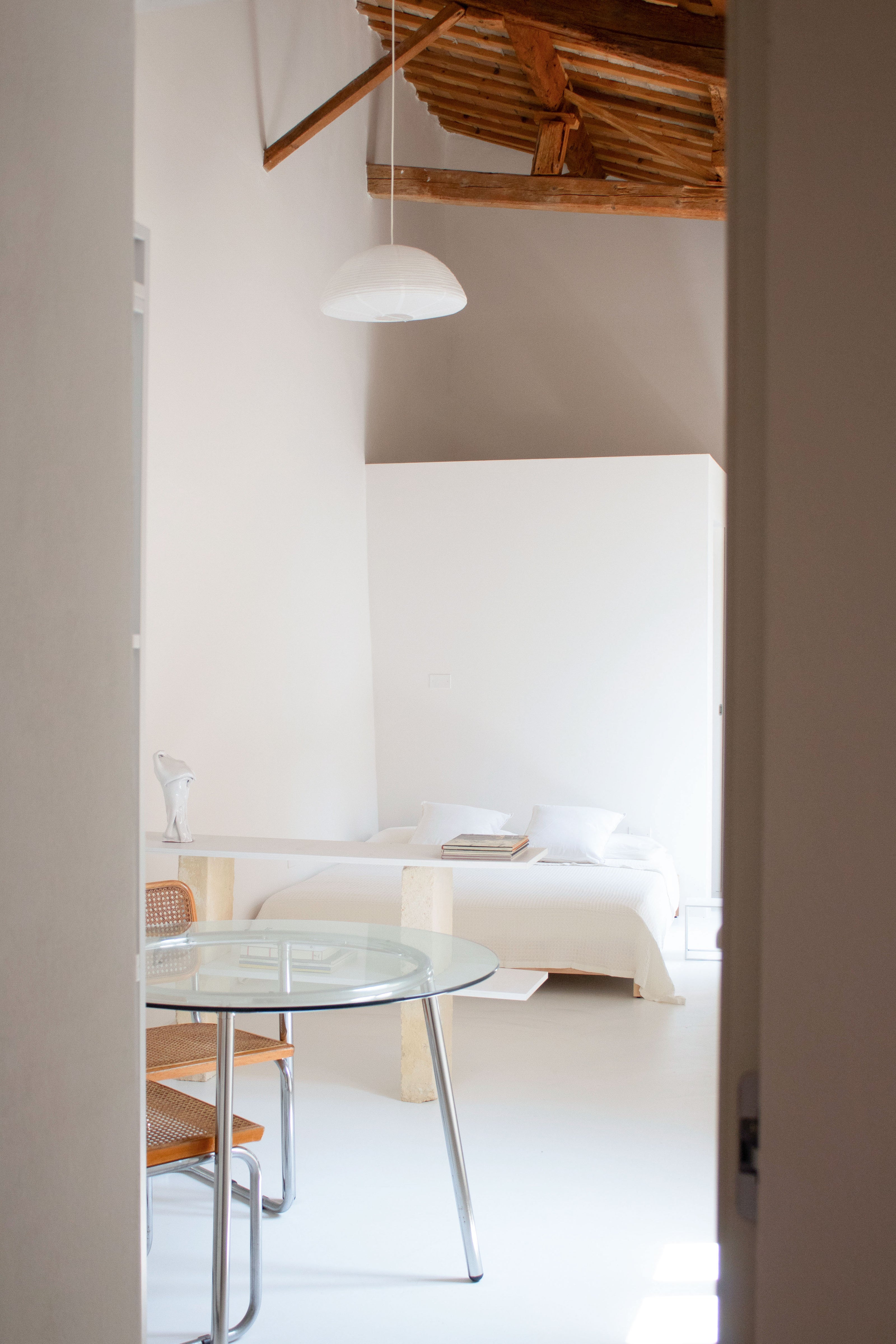 Residenza d’ARRHE, located above our atelier and inaugurated in 2025, is our home, designed according to the values of our brand: carefully selected materials, minimal elegance, and an atmosphere of calm where time seems to slow down.