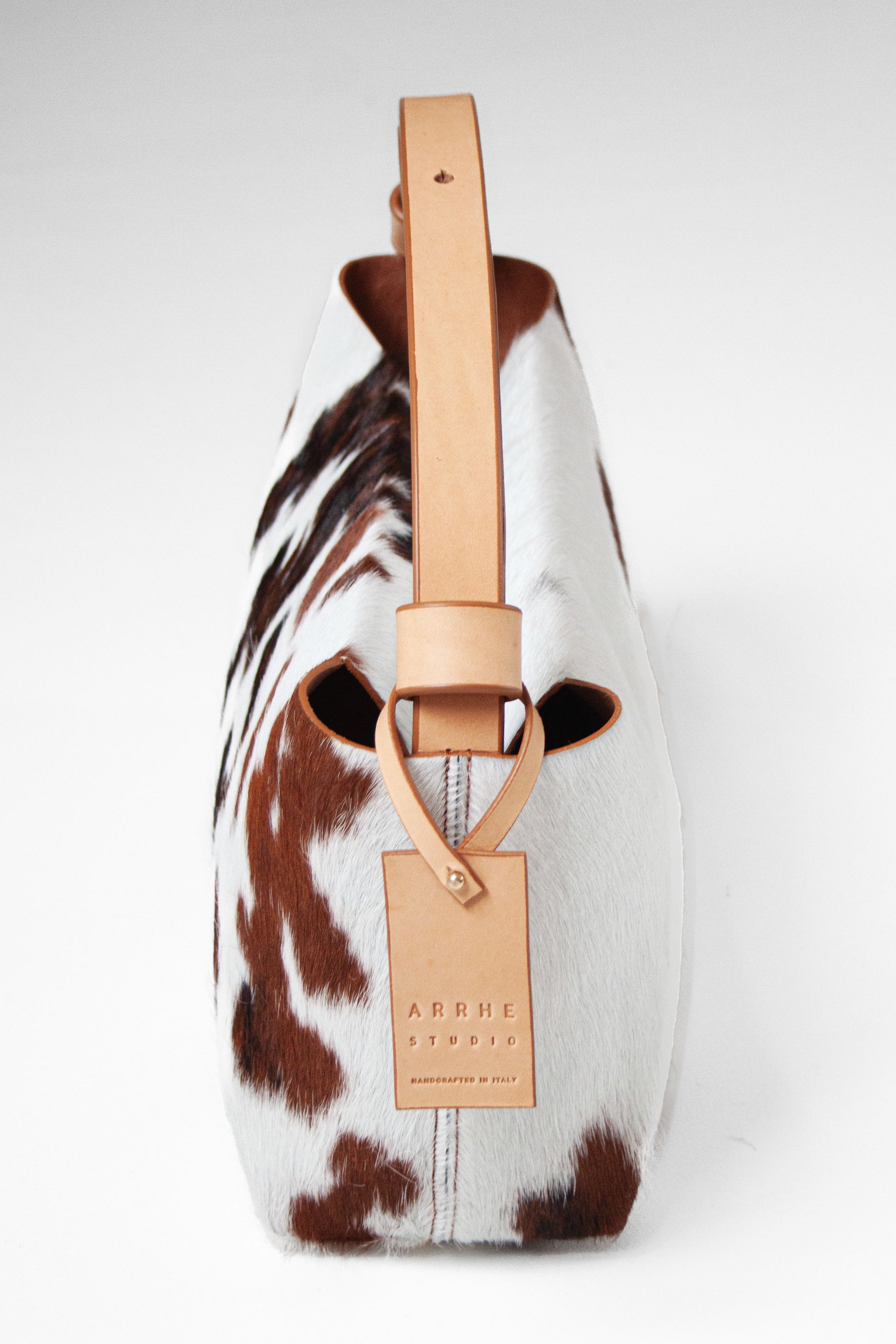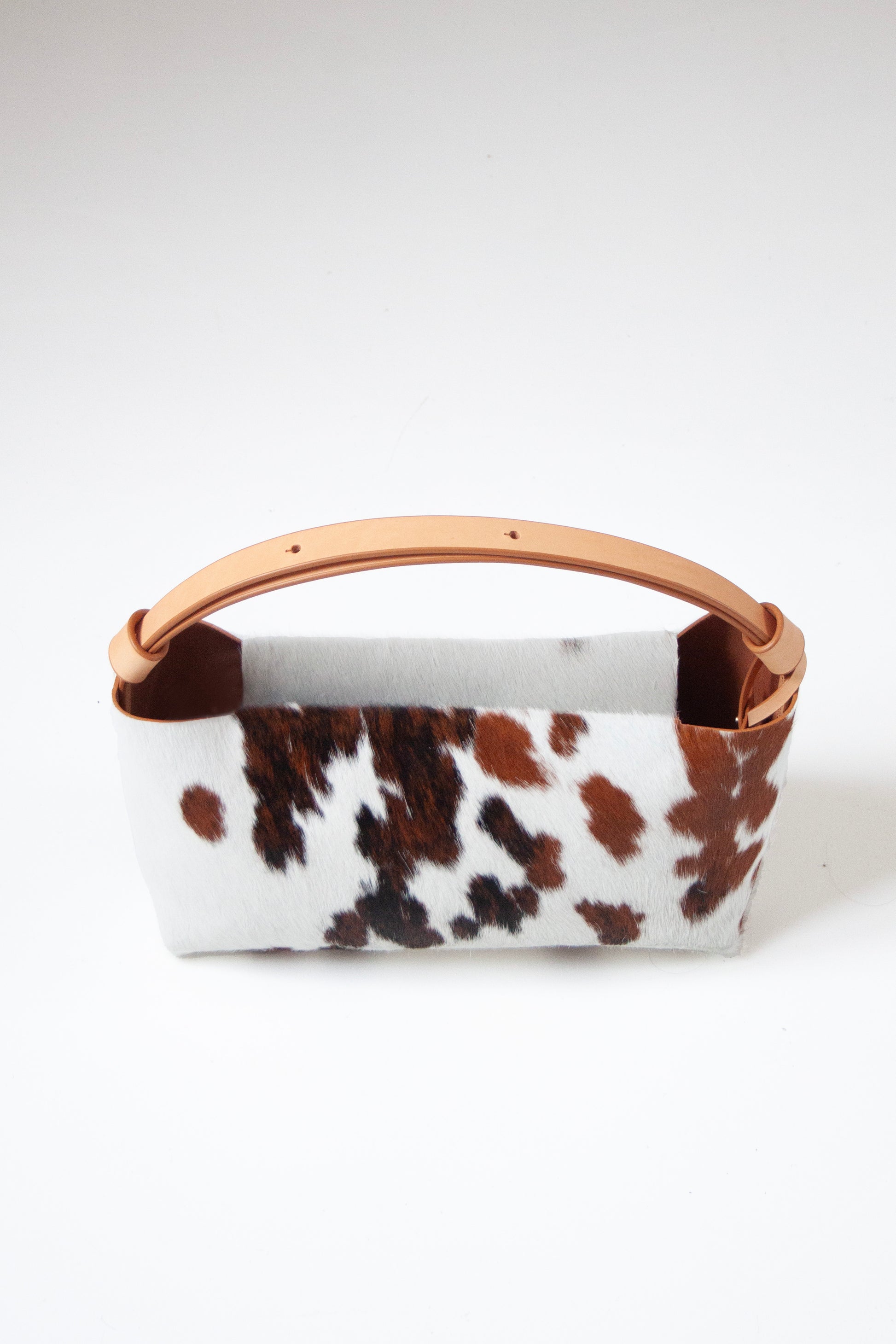 Material: Natural cowhide leather, with the fur varying from cream to brown and black